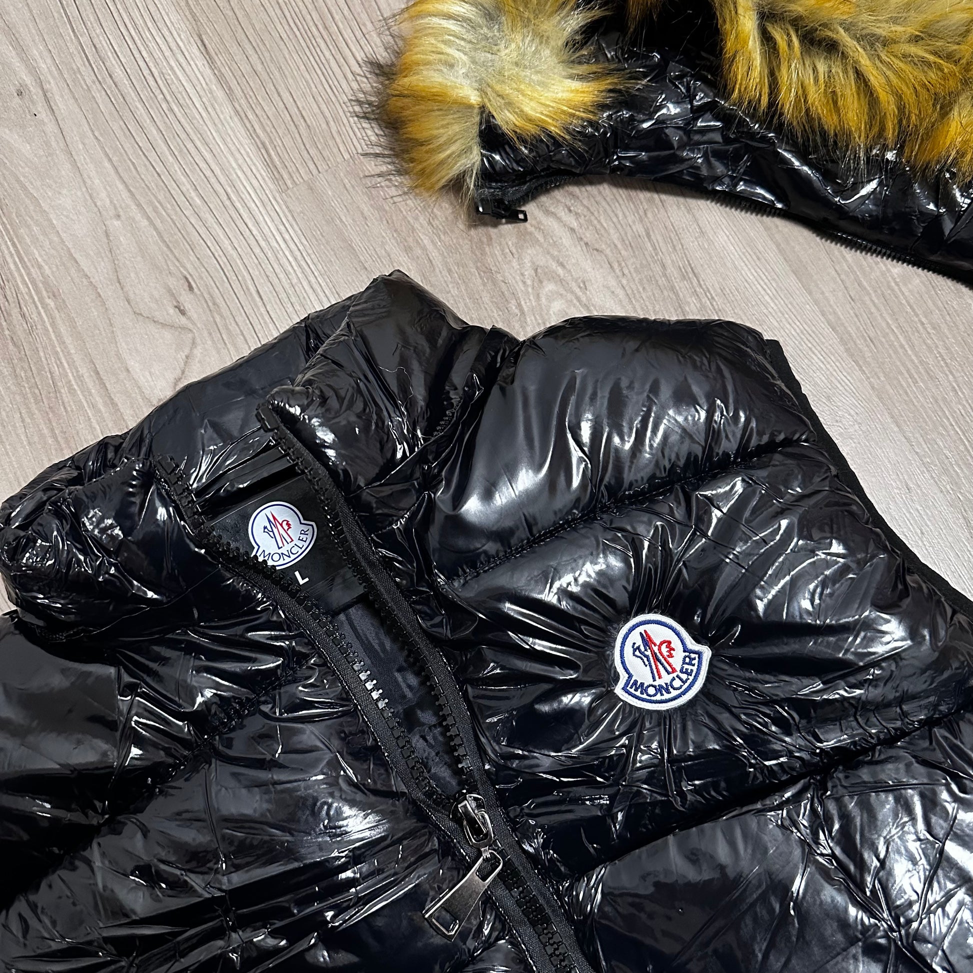 CHALECO ACOLCHADO com PELO MONCLER NEGRO